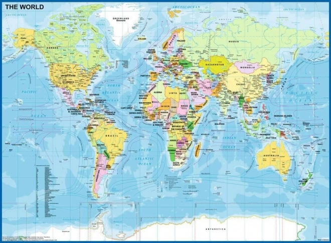 - Tema educativo della mappa del mondo che favorisce la conoscenza di continenti, oceani e paesi.