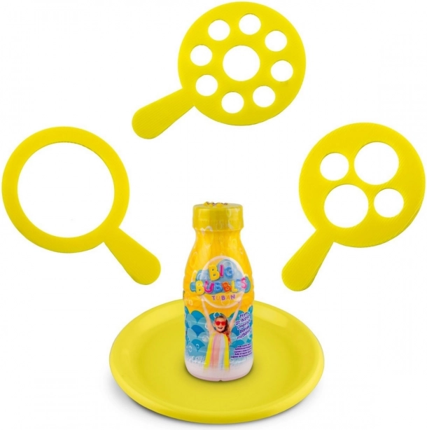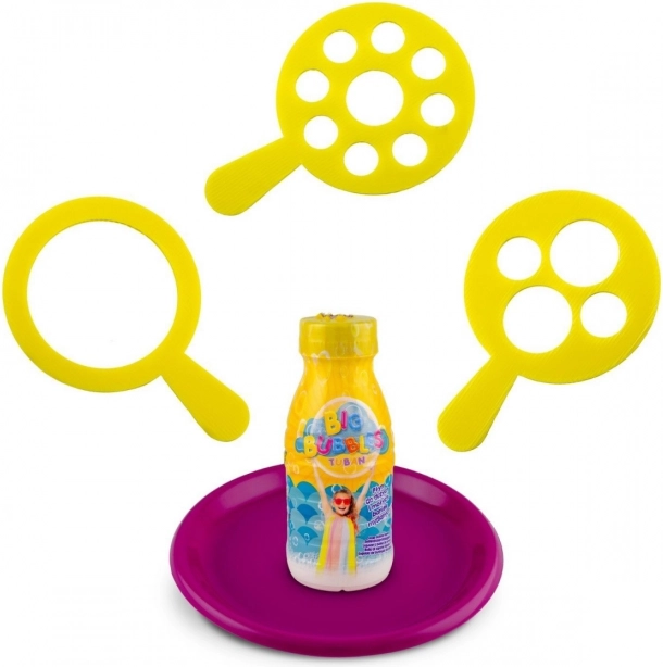 Versa la soluzione nel vassoio, immergi l'anello e con un solo gesto creerai bellissime bolle lucenti. Ideale per giocare all'aperto.
