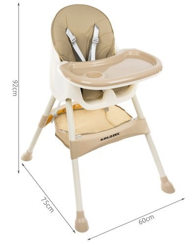 - Tavolino rimovibile in dotazione - Il tavolino del seggiolone Kruzzel è regolabile in 3 posizioni, offrendo libertà di movimento ai bambini. La superficie può essere completamente rimossa e si può posizionare un vassoio per, ad esempio, servire un pasto. Il vassoio ha una rientranza per bicchieri o bottiglie, è facile da pulire e resistente alle temperature da -20 a 100 ºC.
