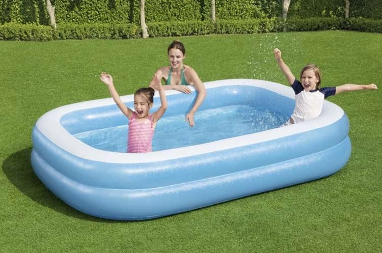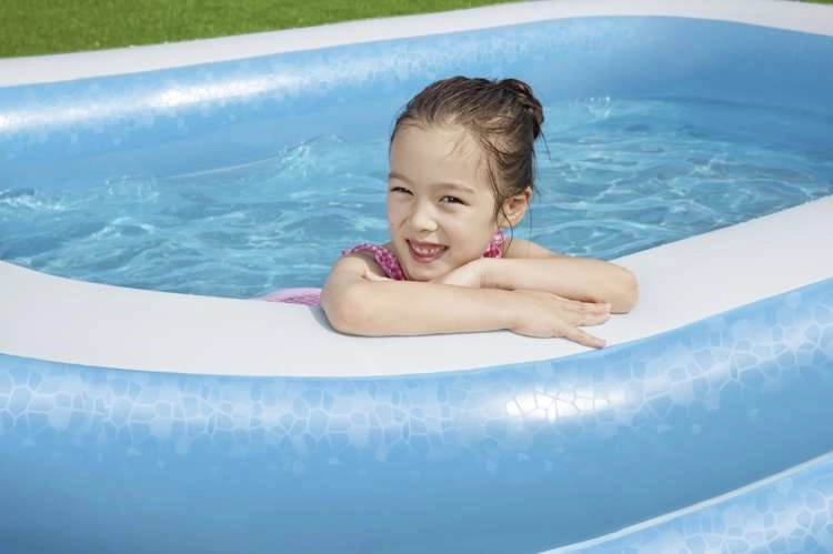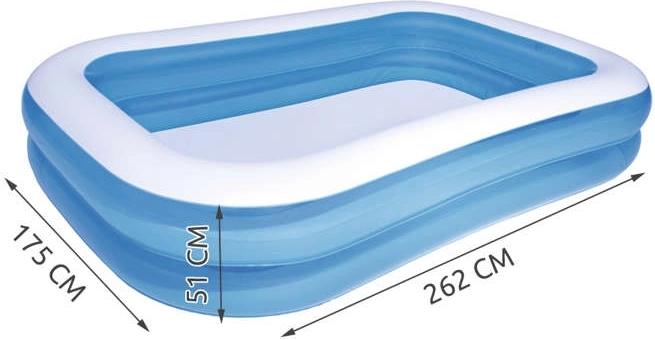 SPECIFICHE - codice prodotto Bestway: 54006; materiale: vinile; configurazione: 2 anelli uguali / ampie pareti laterali / valvola di scarico per lo svuotamento; età: da 6 anni; capacità: 778 litri; dimensioni (lunghezza / larghezza / altezza): 262x175x51 cm; peso: 4,5 kg