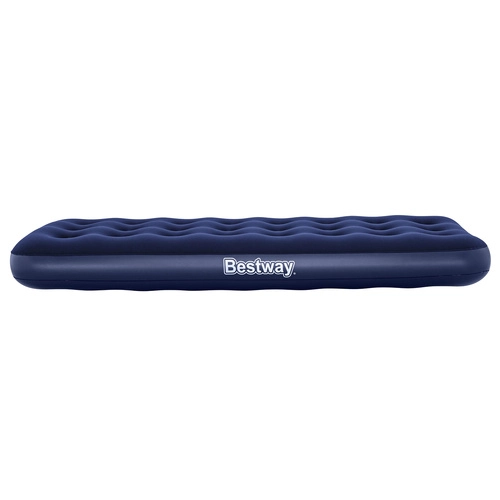 Pratico materasso gonfiabile per una persona con dimensioni 185 × 76 × 22 cm del marchio BESTWAY, ideale per casa e viaggio. Ha una piacevole superficie in velluto, una struttura resistente coil-beam, una valvola di sicurezza per un facile gonfiaggio e sgonfiaggio e nella confezione trovi anche una toppa autoadesiva.