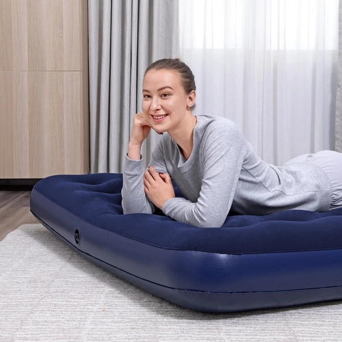 Goditi un sonno comodo ovunque tu sia. Il materasso gonfiabile matrimoniale BESTWAY PAVILLO combina PVC resistente con morbido velluto sulla superficie di riposo per maggiore comfort e migliore aderenza delle lenzuola. La stabile struttura Coil‑Beam distribuisce uniformemente il peso e limita l’effetto oscillante quando si dorme in due.