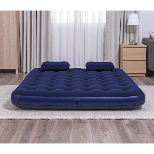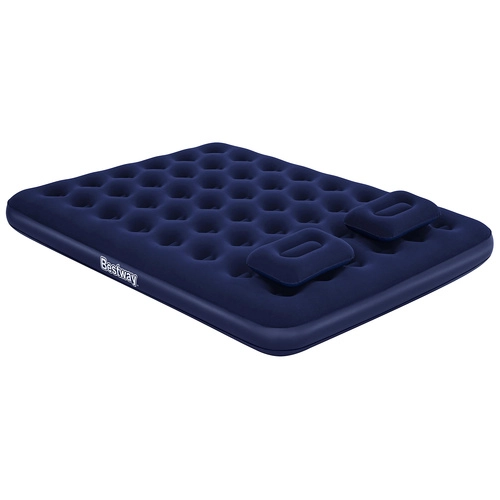 Materasso gonfiabile matrimoniale BESTWAY Queen in piacevole velour offre sonno confortevole a casa e in campeggio. La stabile struttura Coil-Beam garantisce supporto al corpo, le valvole integrate consentono gonfiaggio e sgonfiaggio rapidi. Nella confezione trovi anche una pompa manuale e 2 cuscini. Portata fino a 300 kg.