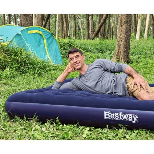 Goditi un sonno confortevole a casa e in viaggio con il materasso ad aria matrimoniale Bestway Pavillo King. Grazie alla stabile struttura Coil-Beam, alla piacevole superficie in velluto e alle dimensioni 203 × 183 cm, il materasso offre alto comfort, resistenza e uso universale sia in interni che sotto la tenda.