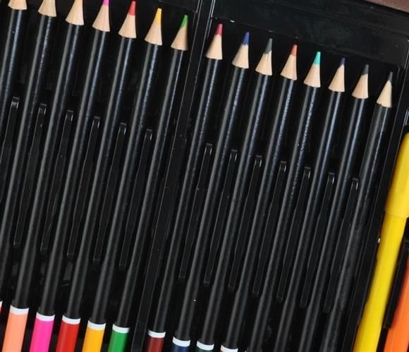 • Acquerelli, pastelli a olio, pennarelli, matite in un unico set