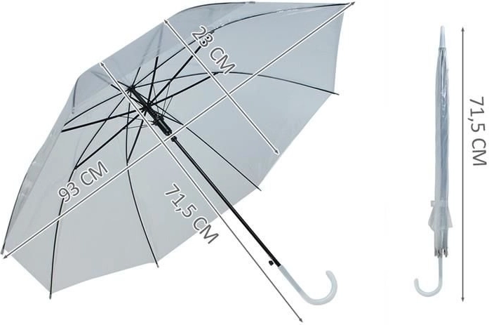 La calotta trasparente in PVC consente di vedere la strada in sicurezza anche con pioggia intensa, quando occorre tenere l’ombrello inclinato. È anche un accessorio di stile per outfit eleganti, inclusi abiti da sposa o da cerimonia.