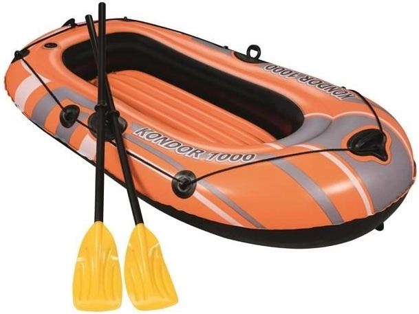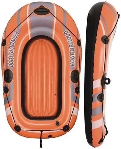 Il gommone gonfiabile Kondor 1000 è pensato per attività acquatiche ricreative. È dotato di tre camere d’aria separate che assicurano stabilità e sicurezza in acqua. Inoltre, la barca dispone di un cavo per la presa con maniglie integrate per un facile ingresso in acqua. Il fondo gonfiabile aggiunge comfort extra durante la navigazione.