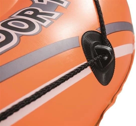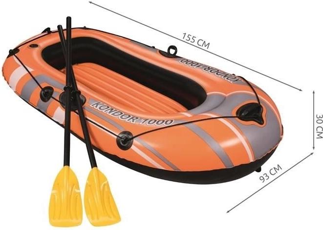 La barca ha scalmi robusti per una pagaiata efficiente e un anello elastico per il traino. La sua struttura è in vinile solido e testato, che offre sicurezza e durata. Tutte le valvole sono progettate per un rapido gonfiaggio e sgonfiaggio ed è presente anche una valvola di sicurezza. Inclusi remi da 1,24 m con certificazione GS.