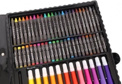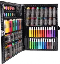 Il set contiene una vasta selezione di forniture artistiche, dalle matite colorate agli acquerelli, rendendolo ideale per diversi progetti creativi.