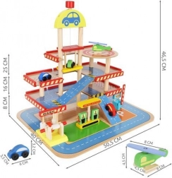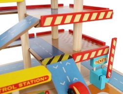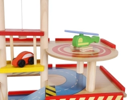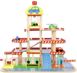 Colorato parcheggio in legno a più livelli che offre ore di divertimento ai bambini e sviluppa la motricità fine e l’immaginazione. Include autolavaggio, stazione di servizio, cassa, ascensore, eliporto e veicoli. La struttura stabile in legno sicuro e gli accessori realistici favoriscono il gioco creativo e l’apprendimento delle situazioni del traffico.