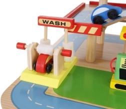 - Ricco set da 27 pezzi: autolavaggio, pompa, cassa, parcheggio a 3 piani, strade, ascensore, 4 automobiline ed elicottero.