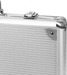 - Robusta valigetta in alluminio con chiusura e manico ergonomico