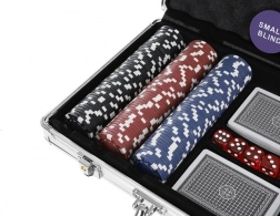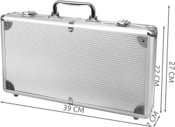 Organizza la tua serata poker con un set completo che offre tutto il necessario per Texas Hold'em e altri giochi di carte. Le fiches con nucleo metallico (10 g) regalano un autentico feeling da casinò: hanno un peso piacevole, si impilano alla perfezione e sono molto resistenti. Il tutto è riposto in una valigetta in alluminio robusta con imbottitura in gommapiuma e scomparti sagomati con precisione, così il contenuto resta al suo posto anche in viaggio.