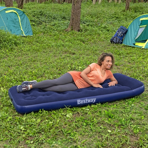 Il materasso gonfiabile singolo BESTWAY Air Mattress Jr. Twin è ideale per pernottamenti in casa e per il campeggio. Offre sonno confortevole, solida struttura coil-beam, cuscino integrato e pompa a pedale integrata per un gonfiaggio rapido ovunque. La superficie superiore in morbido vinile garantisce un contatto piacevole e una facile manutenzione.