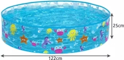 Le specifiche della piscina includono una capacità di 277 litri e dimensioni 122 cm x 25 cm, ideale per i più piccoli. Il prodotto pesa solo 950 g, risultando facile da maneggiare e trasportare. Nella confezione è inclusa una toppa di riparazione impermeabile, che consente riparazioni rapide anche quando la piscina è piena d'acqua.