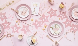Elegante banner con scritta Baby Shower in delicato colore rosa chiaro, perfetto per completare la decorazione della festa in attesa del bebè. Le decorazioni a forma di stelline donano un’atmosfera soffice e, grazie alla lunghezza di circa 3 m, è ideale sopra il candy bar, il photobooth o all’ingresso.