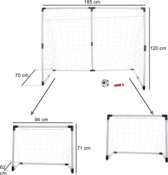 Porta da calcio per bambini 2 in 1 è uno strumento ideale per i piccoli sportivi, che favorisce la loro attività fisica e il divertimento all'aria aperta. Struttura portatile e facile da montare consente una facile maneggevolezza e un rapido smontaggio in una porta grande o due piccole.