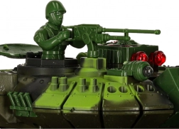 Carro armato RC, telecomando 2.4 GHz, batteria, caricatore USB, figura di carrista con mitragliatrice