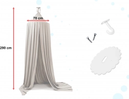 Il baldacchino sospeso grigio è un bellissimo complemento per la cameretta che dona agli interni comfort, privacy e un’atmosfera magica. Grazie al materiale morbido e fluido è perfetto sopra la culla, sul materassino da gioco o in un angolo lettura.