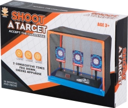 Il bersaglio elettronico da tiro è un ottimo gioco per bambini e adulti che desiderano allenare precisione e coordinazione occhio–mano. Dopo il colpo, i bersagli si abbattono; una volta eliminati tutti e tre, si rialzano automaticamente e sul display LED viene aggiunto un punto. Adatto a dardi e palline in schiuma.