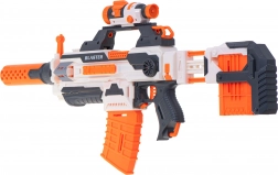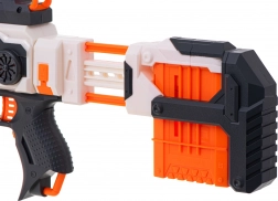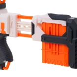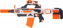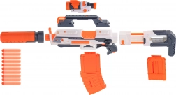 La base del set è un fucile potente a cui puoi collegare facilmente altri componenti. Il fucile principale ha diverse rotaie tattiche. Al centro trovi una finestra di espulsione scorrevole: utile quando, nel pieno della battaglia, un colpo si inceppa. Sulla canna dell’arma è presente un mirino ribaltabile.