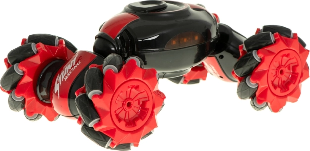 Controlla il veicolo come preferisci: con il controller a joystick classico oppure con il cinturino gestuale Gravity Sensor. La trasmissione stabile è garantita da 2,4 GHz. La struttura è progettata per elevata resistenza agli urti, la batteria da 1200 mAh offre fino a 20 minuti di guida e le luci LED enfatizzano il look futuristico.