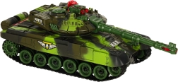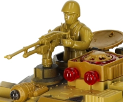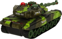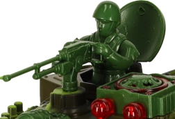 Il telaio cingolato con cingoli in gomma morbida assicura un’ottima trazione; la torretta girevole ruota fino a 300° e il cannone a infrarossi consente tiri sicuri a breve distanza. Le spettacolari luci LED e i ricchi effetti sonori di motore, cannone e mitragliatrice intensificano l’atmosfera di un vero campo di battaglia. Plastica di qualità e lavorazione accurata garantiscono mesi di divertimento.