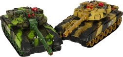 Set di due carri RC T90 con mimetica forestale e desertica per battaglie realistiche a due giocatori. Tiro a infrarossi, rinvio di rinculo con vibrazione, indicatori luminosi dei colpi e ricchi effetti sonori garantiscono azione avvincente. Il controllo a 2,4 GHz consente guida fluida, rotazione della torretta e tiro: divertimento per ore.