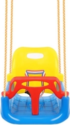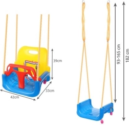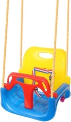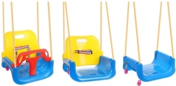 Questa altalena colorata 3 in 1 è una scelta eccellente per bimbi piccoli e più grandi. Nella configurazione con T‑bar e schienale alto trasporta in sicurezza i più piccoli; in seguito è possibile rimuovere le parti anteriore e posteriore e trasformarla in una seduta classica. Le cinghie di sicurezza regolabili tengono il bambino ben saldo, mentre la struttura antiscivolo della seduta impedisce lo scivolamento anche durante il gioco più vivace.