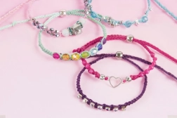 Il set include filati di cotone, perline scintillanti e colorate e istruzioni semplici. I bambini possono iniziare a realizzare i braccialetti immediatamente, senza acquistare altri accessori.