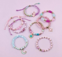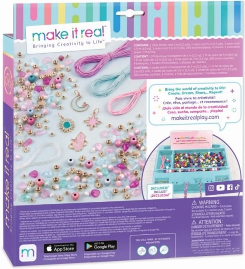 Crea braccialetti magici ispirati al cielo e alle stelle. Il set Make It Real Celestial Stones include un’ampia selezione di perline, perline tipo perla e ciondoli, grazie ai quali i bambini possono realizzare facilmente braccialetti secondo la propria fantasia. Ideale per creare insieme agli amici o come regalo creativo.