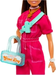 Inclusa una gamma di accessori colorati – occhiali da sole con semi-lenti, cerchietto rosa, collana con stella, bracciale, cintura con motivo cactus e borsa con grafica retrò “Good Day”. La bambola non sta in piedi da sola. I colori e i dettagli possono variare.