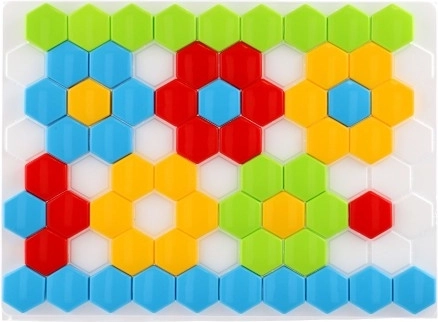 Questo affascinante mosaico offre ai bambini infinite possibilità nella creazione di immagini e motivi diversi. Gli esagoni colorati vengono disposti su una base che ricorda un alveare, stimolando il loro pensiero creativo. Questa non è solo un'ottima attività ricreativa, ma aiuta anche a sviluppare la motricità fine e la consapevolezza spaziale.
