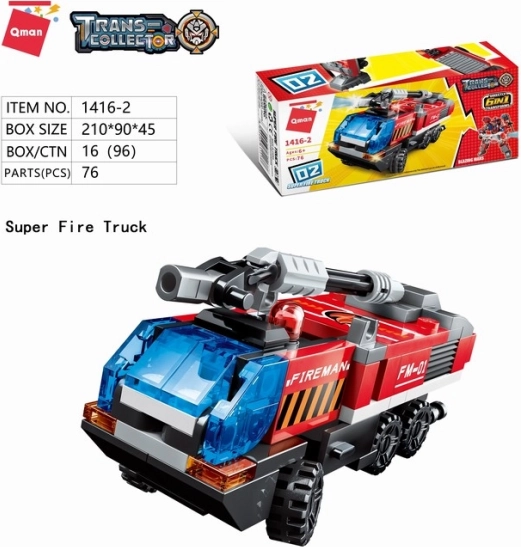 Scopri la serie Qman Blazing Mars – mini set di costruzione di tecnica antincendio combinabili tra loro. Completando l’intera serie costruirai un grande modello unitario di mech dei pompieri. Grazie ai mattoncini colorati e a soluzioni costruttive ingegnose, i bambini si divertiranno per ore in giochi creativi allenando al contempo la motricità fine.