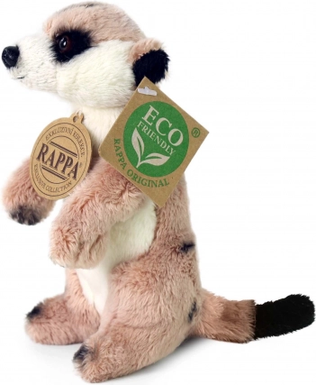 Suricato di peluche 14 cm di Rappa con imbottitura eco-friendly da bottiglie PET. Peluche morbido e di qualità, design realistico, sicuro da 0+. Ottima idea regalo per bambini.