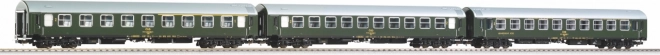 Il set di tre vagoni passeggeri ČSD Espressa Occidentale è fabbricato con precisione rispettando i dettagli storici. Tutti i vagoni sono dotati di quattro assi e catturano perfettamente i dettagli delle finestre, delle porte e dei carrelli.