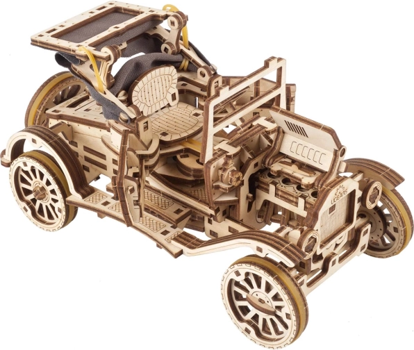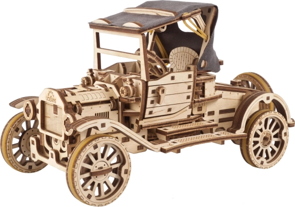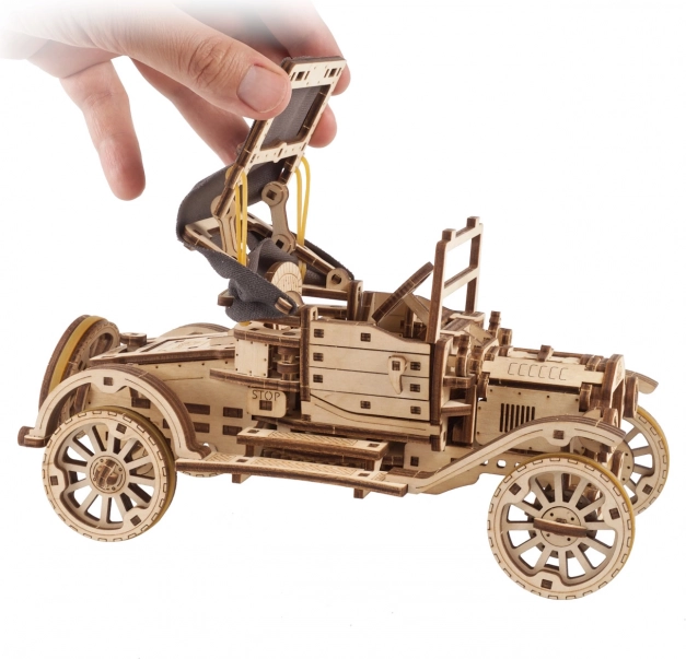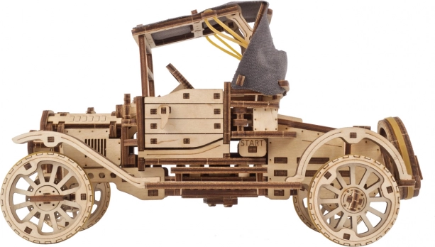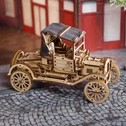 Entra nel mondo dei veicoli storici con questo modello in legno ispirato all'iconica auto Ford Model T. Il modello offre porte apribili, un tettuccio di tela pieghevole e la possibilità di guida autonoma inclusa la retromarcia.