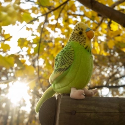 Premendo il pancino si sente il fedele cinguettio delle cocorite. I bambini potranno divertirsi con un gioco interattivo sviluppando la percezione uditiva.