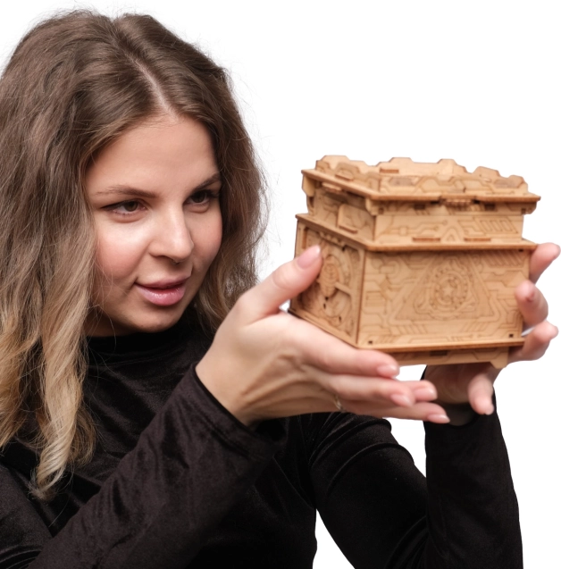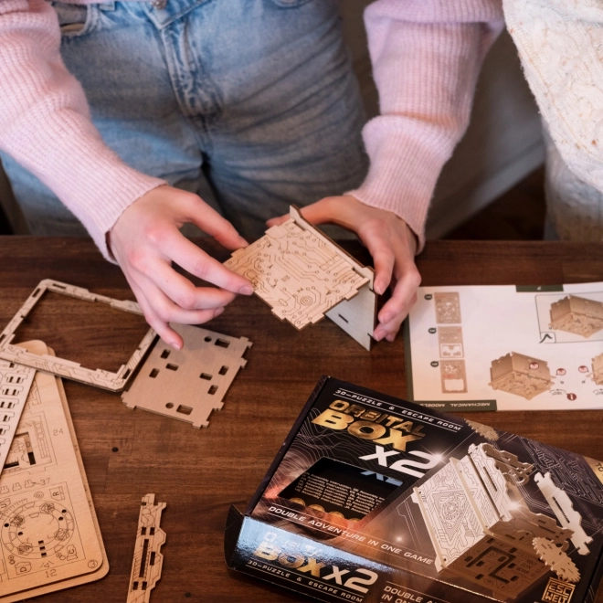 Entra nel mondo dell'escape room casalinga con il modello ESCAPEWELT ORBITAL BOX. Grazie ai precisi tagli laser e alle chiare istruzioni illustrate, assemblerai la scatola senza colla né attrezzi. Dopo l'assemblaggio ti attende una serie di meccanismi intelligenti, simboli e combinazioni che dovrai decifrare per sbloccare lo scomparto segreto.