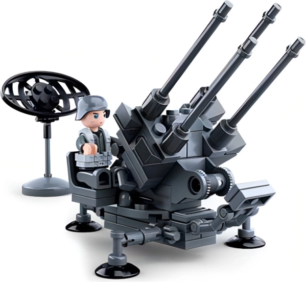 Costruisci un realistico cannone antiaereo della serie SLUBAN ARMY WW2 e proteggi lo spazio aereo con un artigliere esperto. Il set offre 96 pezzi, 1 minifigure e difficoltà media. Grazie alla compatibilità con LEGO, COBI e MEGA BLOCKS potrai ampliare facilmente la tua collezione. Dalle singole mini costruzioni della serie puoi combinare i pezzi e assemblare un modello militare più grande. L’ABS di qualità, il radar preciso e le minifigure innovative con parti mobili garantiscono un’ottima esperienza di costruzione.