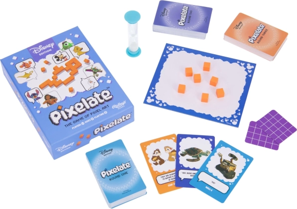 Disney Pixelate è un gioco da tavolo vivace e ingegnoso in cui componi motivi ispirati ai mondi DISNEY e PIXAR usando pixel colorati in legno. Ogni round è a tempo, il numero di pixel disponibili diminuisce e la tensione cresce – riuscirai con poche tessere a rendere oggetti e personaggi iconici in modo che gli altri li riconoscano?