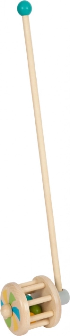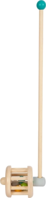 Questo veicolo di legno funge anche da sonaglio ed è un compagno sicuro e resistente per ogni bambino piccolo. Palline colorate vivaci rimbalzano selvaggiamente attorno al tamburo di legno quando si spinge il veicolo e emette un suono divertente.