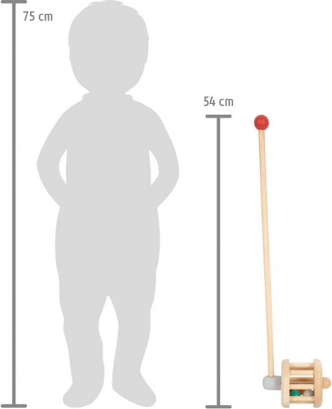 Questo veicolo di legno è l'assistente ideale per lo sviluppo delle capacità motorie e dell'equilibrio nei bambini piccoli. Ha un design unico con palline colorate che catturano l'attenzione del bambino e lo motivano a muoversi. La sfera di legno afferrabile sul manico migliora il comfort durante la camminata.