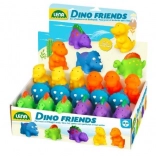 Basta immergerlo in acqua, premere e rilasciare – il dinosauro aspira l’acqua e, quando lo si preme, la spruzza. Bagnetto, piscinetta e giardino diventano subito un gioco.