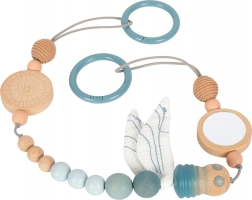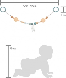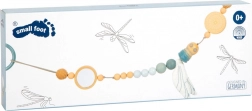 Questa catenella per passeggino dal design SMALL FOOT in stile naturale colpisce per la combinazione di palline di legno di diverse dimensioni, delicate tonalità pastello ed elementi tessili. Grazie al cordino elastico si adatta a vari tipi di passeggini o maniglie e, con i punti a pressione sugli anelli di fissaggio, rimane saldamente in posizione. La libellula in tessuto con ali fruscianti sostiene la percezione sensoriale e la motricità fine del bebè.