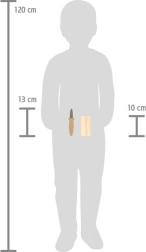 Questo set pratico per piccoli campeggiatori e giovani creativi include tutto il necessario per un intaglio sicuro: un coltello di qualità con lama affilata su un solo lato e punta smussata, guanti antitaglio taglia XS, un blocchetto di legno per provare i tagli e una robusta custodia in tessuto con passante per cintura. Le dimensioni compatte e il manico in legno, adatto alla mano dei bambini, favoriscono abitudini corrette e una presa sicura.
