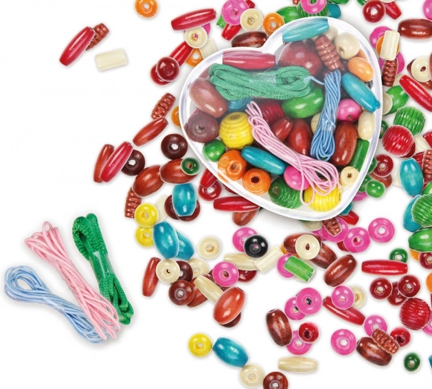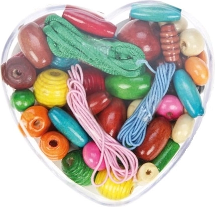 Offri al tuo bambino la possibilità di sviluppare creatività e motricità fine grazie alle perline di legno Lena. Il set contiene perline colorate di varie forme e dimensioni da 9,5 mm, conservate in un piccolo cuore trasparente insieme a tre cordoncini da infilare.