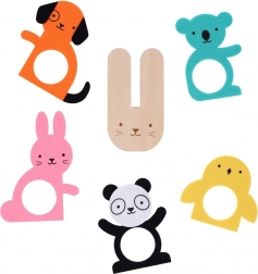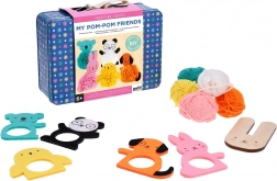 Il set creativo contiene cinque filati colorati, cinque animali in feltro e un creatore di pon pon in legno, tutto il necessario per creare i propri amici di pon pon.