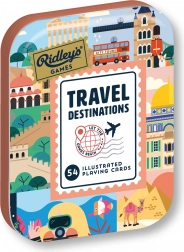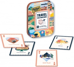 Scopri il mondo attraverso un mazzo di carte: ogni carta presenta un'illustrazione originale di una celebre destinazione turistica. Il mazzo è comodamente riposto in una resistente scatola in metallo, perfetta per lo zaino o la tasca, e offre ore di divertimento a casa, in gita e in vacanza.