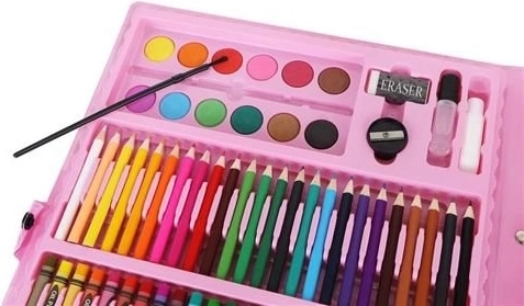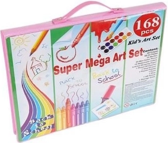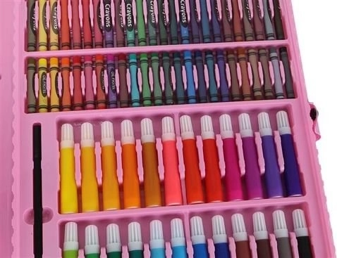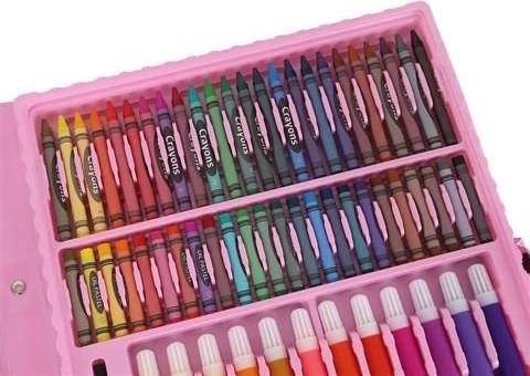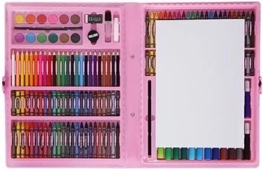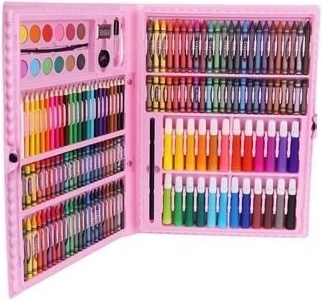 Set artistico completo in una pratica valigetta rosa con 168 pezzi per piccoli e grandi creativi. All'interno trovi matite colorate, pennarelli, pastelli a cera, pastelli a olio, acquerelli e utili accessori, inclusi fogli e tavolozza. Grazie ai vani ordinati e alla maniglia è ideale per casa, scuola e viaggi.